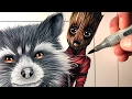 Let's Draw ROCKET RACCOON + BABY GROOT from GUARDIANS OF THE GALAXY VOL. 2 - FAN ART FRIDAY |